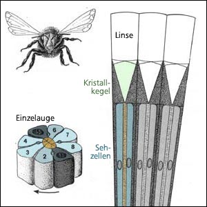 ca 5000 Einzelaugen mit je 8 Sehzellen. (nach Barth 1981)
