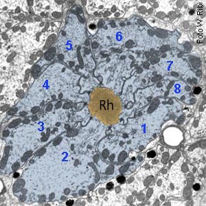 Zentrum dieser Zellen liegt der lichtempfindliche Teil, das Rhabdomer